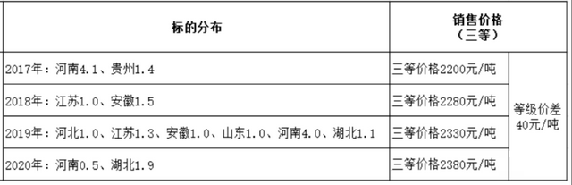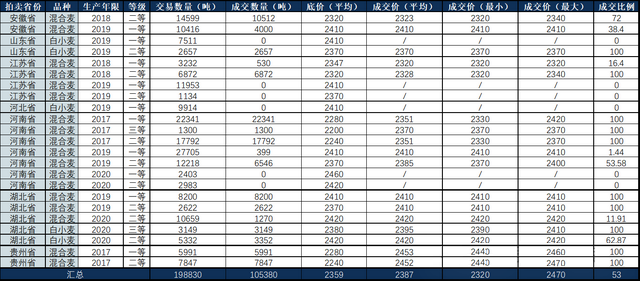 而2018年、2019年、2020年小麦三等起拍价分别为2280元/吨、2330元/吨、2380元/吨,随着拍卖底价走高成交率下降。