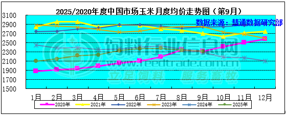 图表:2025年9月中国玉米月度价格走势图(单位:元/吨)