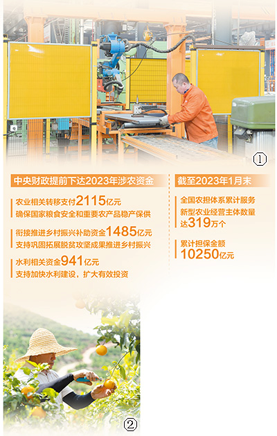 衔接推进乡村振兴补助资金1485亿元、农业相关转移支付2115亿元、水利相关资金941亿元、农村综合改革转移支付156亿元……去年末,中央财政提前下达2023年一系列涉农资金,为推进乡村振兴提供有力保障。开年以来,各地积极谋划、加快落实,一笔笔财政资金直达田间地头,全力支持抢抓农业生产。