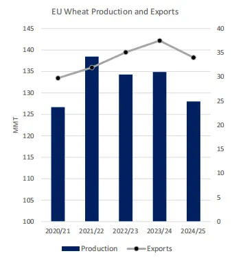 2024/25年度欧盟小麦出口将大幅下降