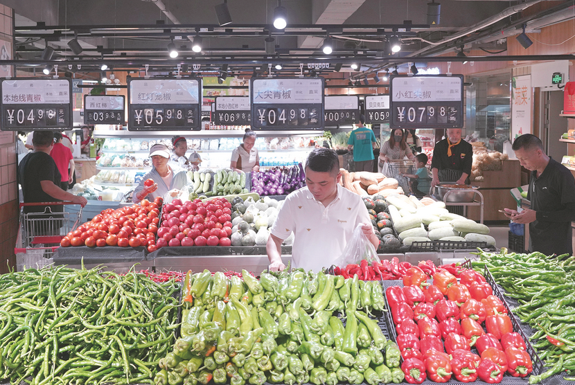 8月9日,顾客在湖南省怀化市通道侗族自治县一家生活超市选购蔬菜。