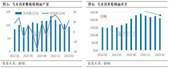 棕榈油的情况相对于豆油和菜籽油得表现要强一些,受马来西亚3月份暴雨的影响,棕榈油产量有所下降,据南部半岛棕榈油压榨商协会(SPPOMA)数据显示,2023年3月1-25日马来西亚棕榈油单产减少22.61%,出油率减少0.06%,产量减少22.92%,且2月份库存下降明显,供应收紧对价格支撑作用较强,供需格局较年初存在明显的改善。未来受制于豆油和菜籽油价格回落的影响,价格难有较大的涨幅,而原油价格高位或将托底棕榈油价格,因此棕榈油整体或以震荡为主。