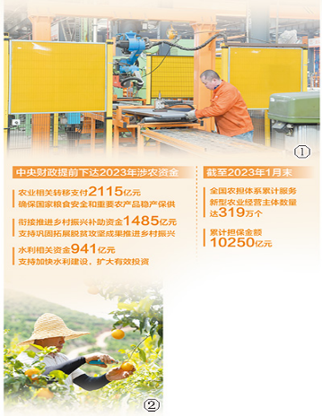 今年的《政府工作报告》提出:“稳定粮食生产和推进乡村振兴。一体推进农业现代化和农村现代化。”购置农机有补贴、销售自产农产品减免税费、“农担贷”化解融资难题……开年以来,财税政策持续发力、“精耕细作”,鼓励农企研发创新、畅通产业链上下游,用实打实的真金白银,加强多方面帮扶,不断夯实农业发展基础,推动农业实现高质量发展。
