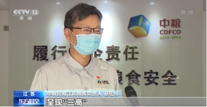 中粮贸易江阴粮库负责人 蔡宏伟:今年的夏粮收购在数量、质量跟价格方面呈现“三高”,小麦质量好,亩产跟往年比也有相应的增加。
