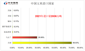 其中,2021年我国从乌克兰进口玉米824万吨,占比29.07%,主要用于饲料加工。央视财经报道称,近段时间以来,玉米的进口价格持续上涨。从去年年底的每吨1900元,涨到了目前的2600元每吨。专家分析认为,冲突一旦加剧,短期将继续推高玉米进口价格。