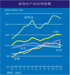 2021年全年粮农组织植物油价格指数平均为164.8点,比2020年上升65.8%,创年度历史新高。