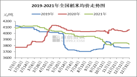 据卓创资讯统计,2021年全国稻米年均价为3980.78元/吨,同比下滑0.29%。其中高点为4127元/吨,低点为3803.00元/吨,高低价差324元/吨。今年稻米价格走势呈现三个阶段。