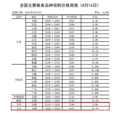 玉米 | 中等 | 2920 | 3020 | 3.42% |
