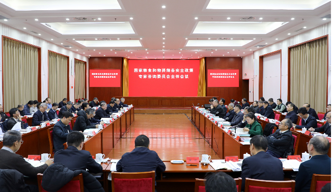 1月10日,国家粮食和物资储备安全政策专家咨询委员会全体会议在京召开。国家发展改革委党组成员,国家粮食和物资储备局党组书记、局长刘焕鑫出席会议并讲话。国家粮食和物资储备安全政策专家咨询委员会顾问陈锡文、张晓强、聂振邦、苏波、王庆云、郭玮,副主任委员梁彦、贾骞、刘小南出席会议,副主任委员兼秘书长黄炜主持会议。国家粮食和物资储备局党组成员、副局长钱毅、秦玉云、王宏、陈军生出席会议。金征宇院士等47名专家委员参加会议。