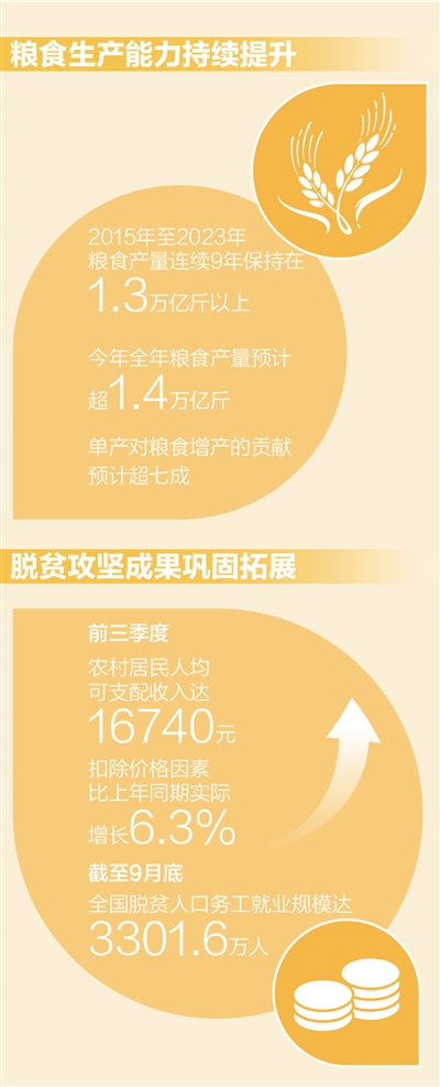 粮食和重要农产品供给保障进一步夯实,乡村全面振兴取得积极进展,农业强国建设迈出坚实步伐……10月25日,国务院新闻办举行新闻发布会,介绍今年前三季度农业农村经济运行情况。农业农村部副部长张兴旺在会上表示,前三季度农业农村发展保持稳中向好、稳中提质的势头,为巩固和增强经济回升向好、推动高质量发展提供了有力支撑。