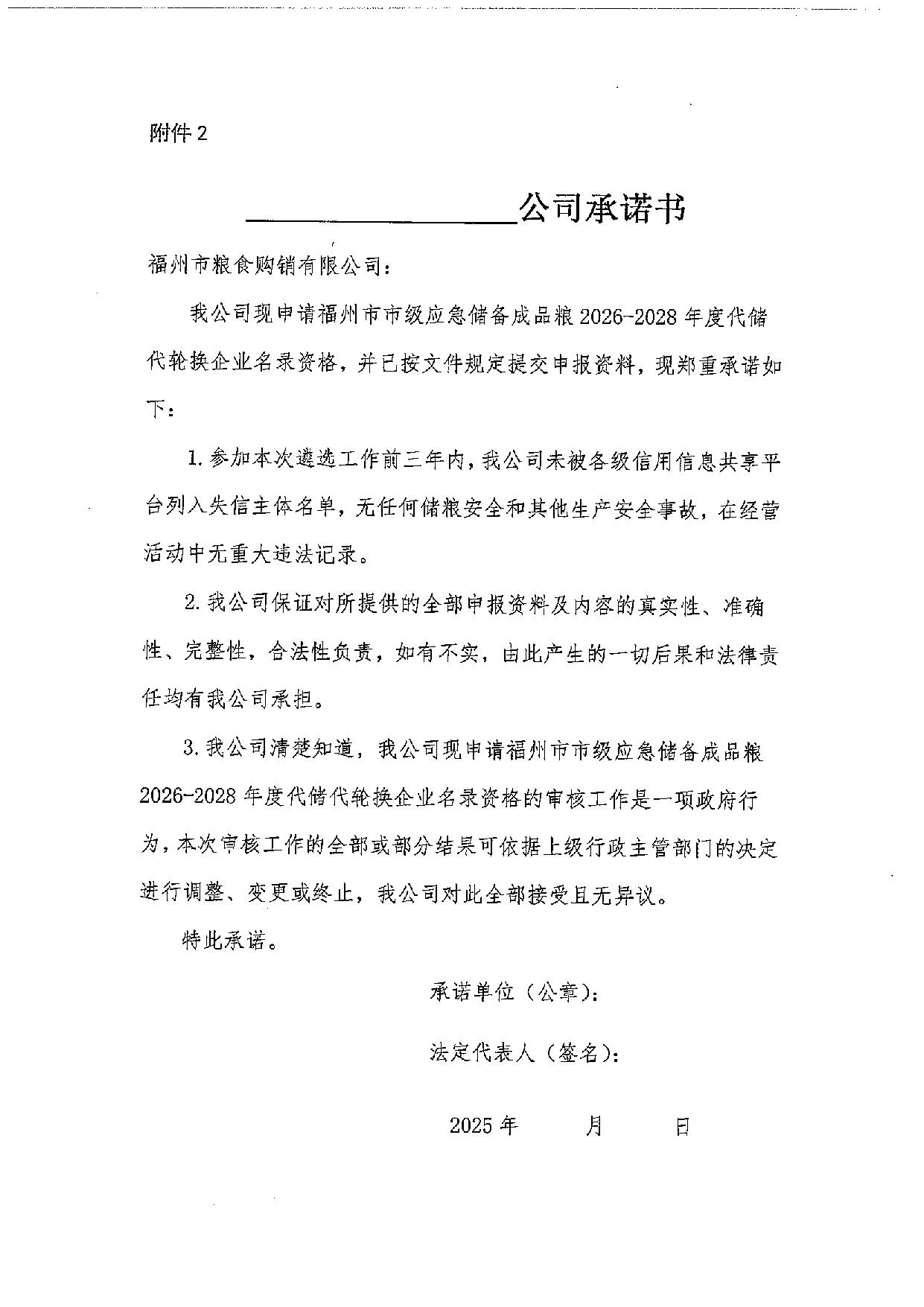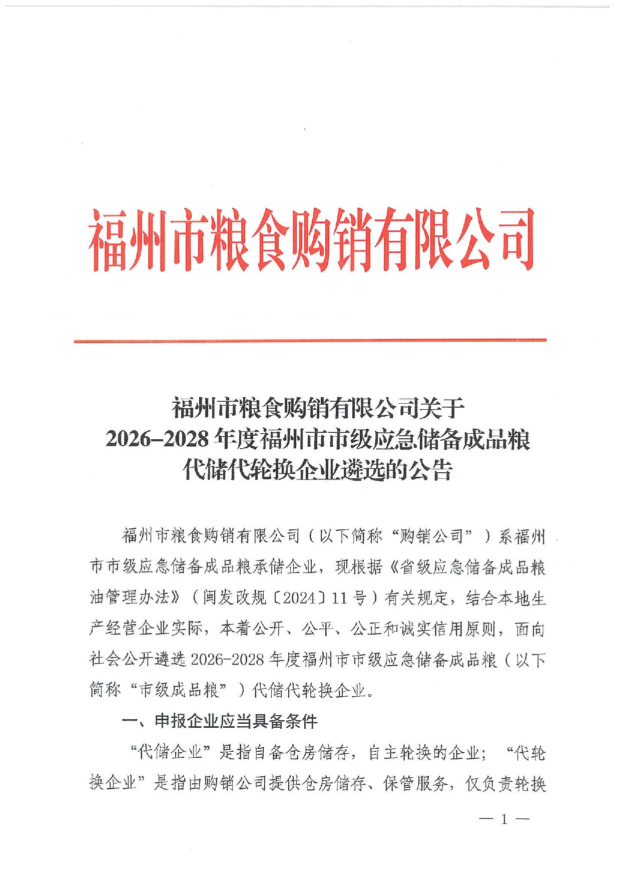 福州市粮食购销有限公司关于2026-2028年度福州市市级应急储备成品粮代储代轮换企业遴选的公告