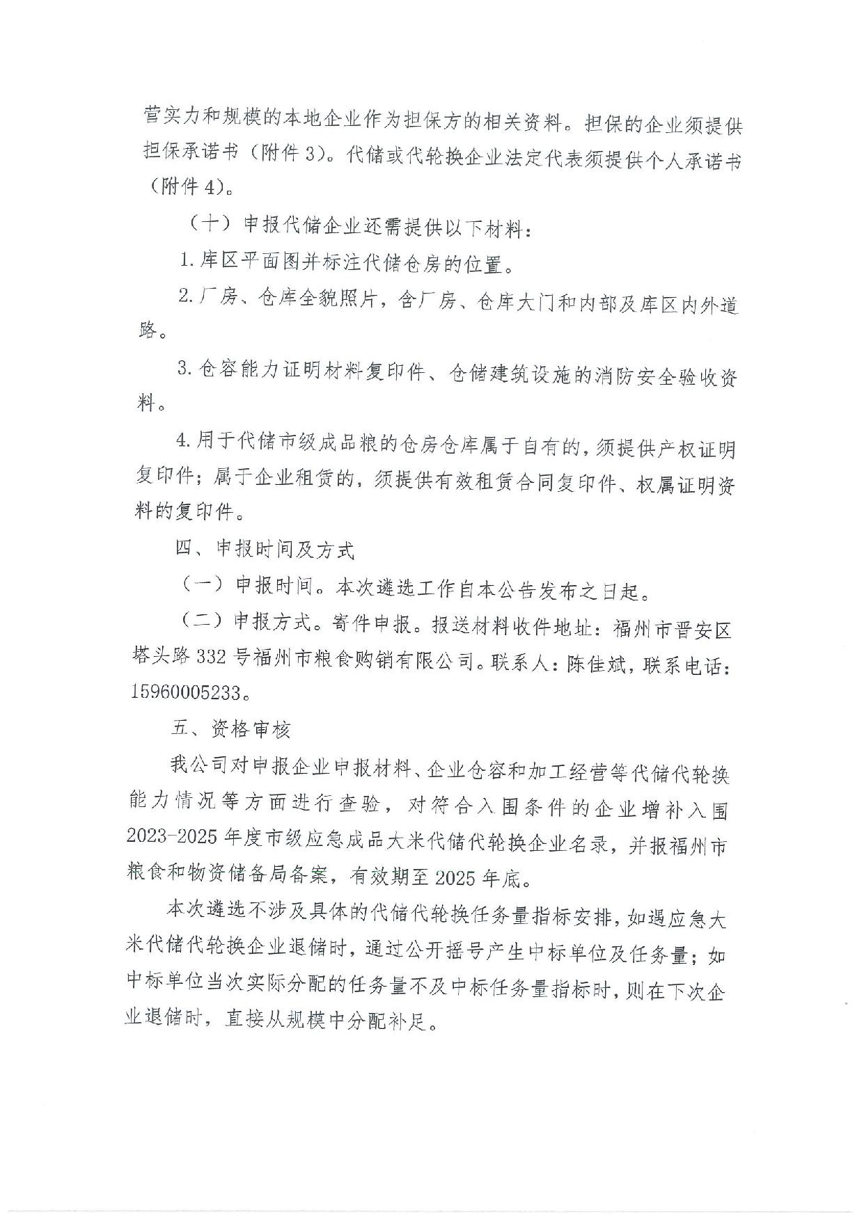 福州市粮食购销有限公司关于增补2023-2025年度市级应急储备成品大米代储代轮换入围企业的公告