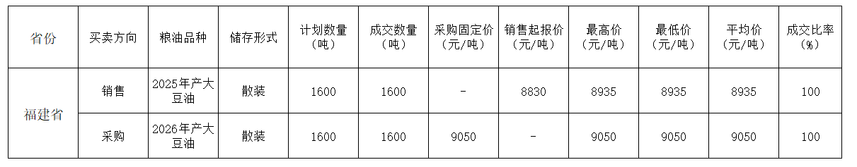 2026年4月28日福建省福州市榕香粮油购销有限公司大豆油购销双向竞价交易会成交结果